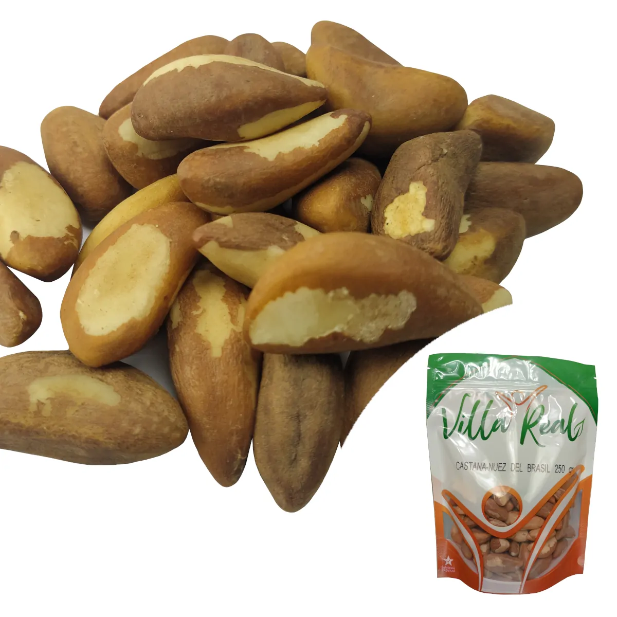 250 gramos de Castaña natural con piel, También conocido como Nuez del Brasil o Nuez amazónica. En bolsa Doypack sellada, lista para consumir.
