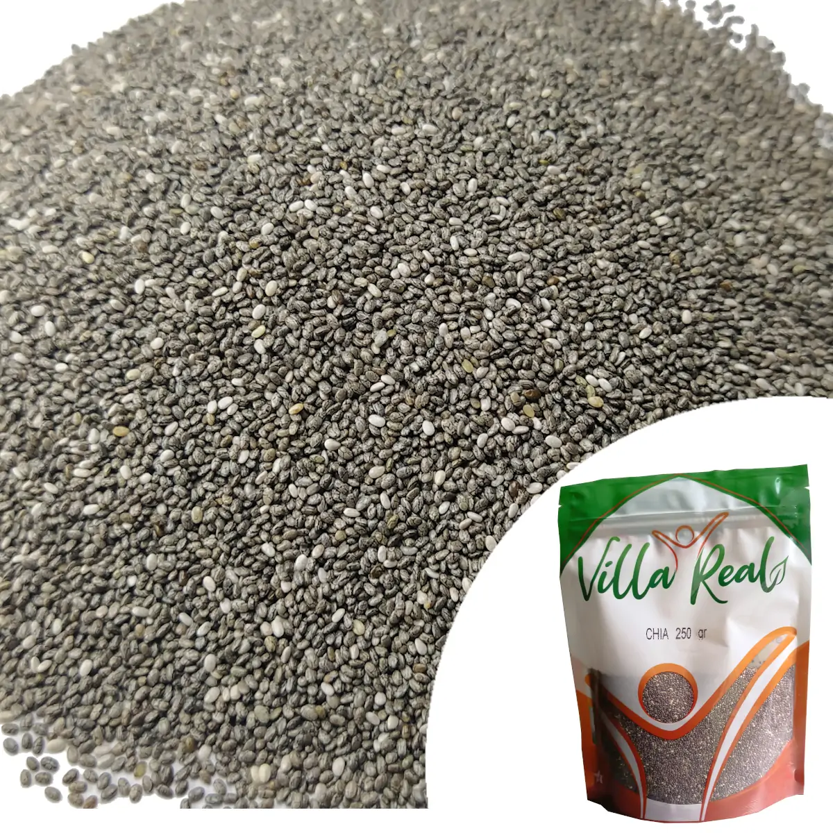 250 gramos de Semillas de Chia Negra, en bolsa Doypack sellada, Lista para consumir.