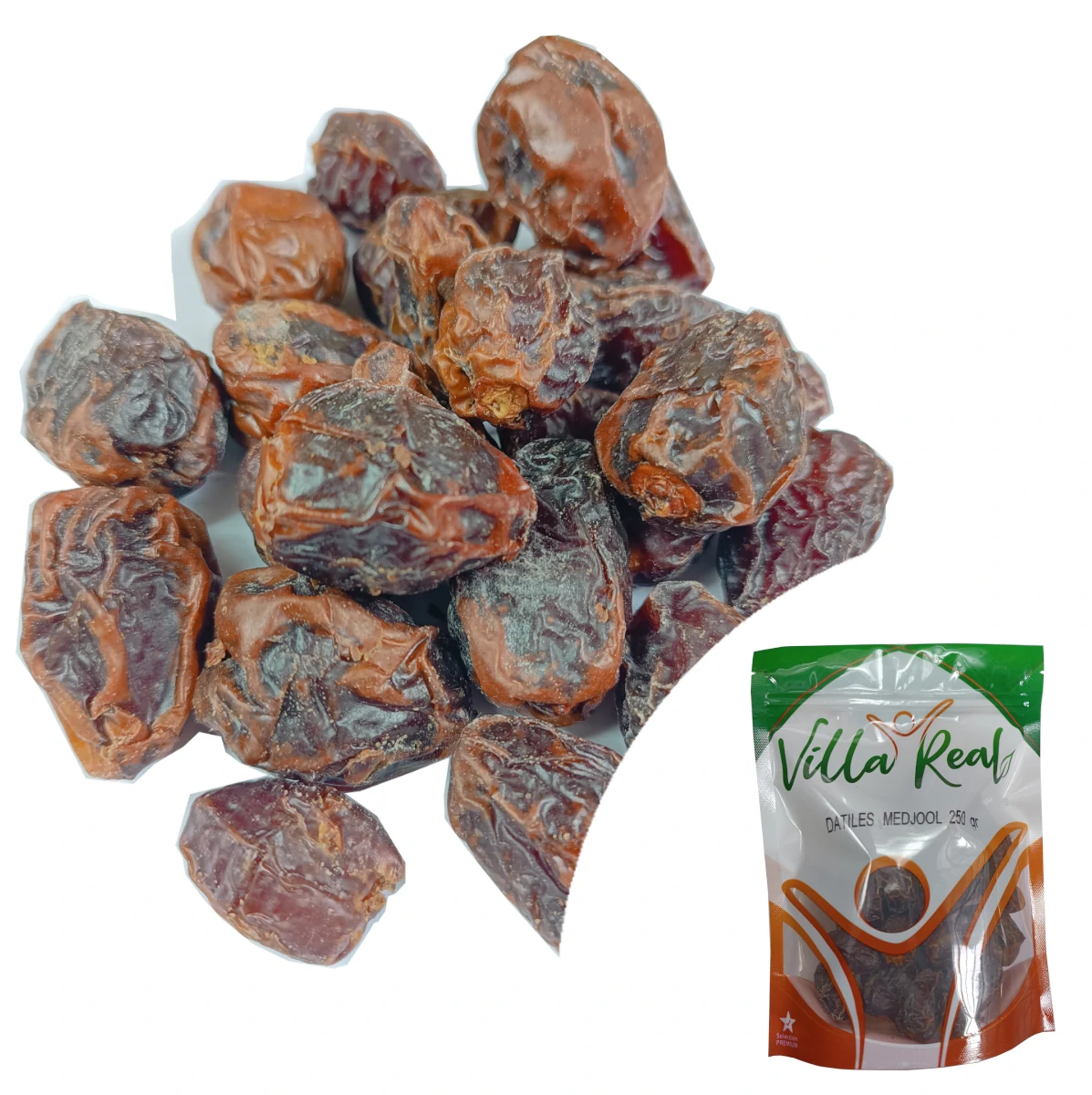 250 gramos de Dátil deshidratado Medjool con pepa, en bolsa Doypack sellada, Lista para consumir.