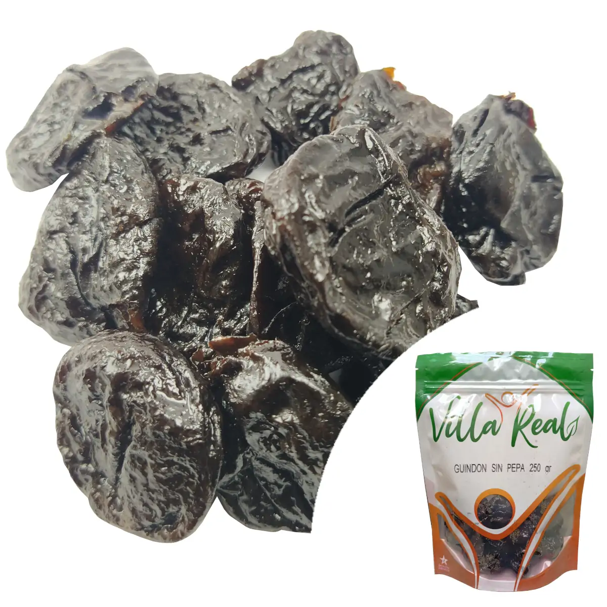250 gramos de Guindones sin pepa ( ciruela deshidratada ), en bolsa Doypack sellada, Lista para consumir.