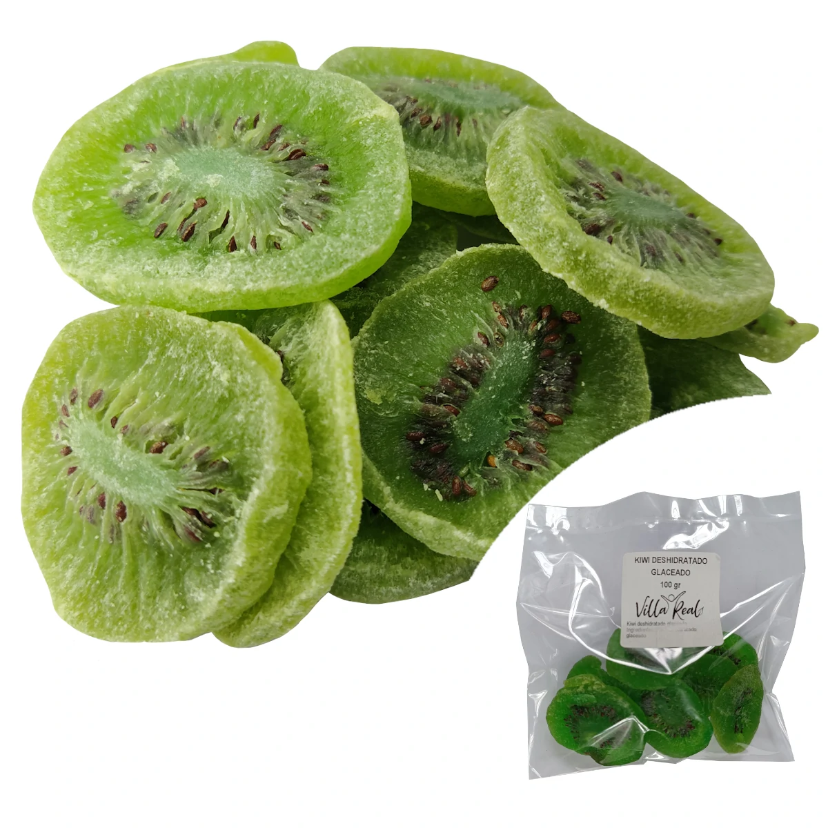 100 gramos de Kiwi deshidratado glaceado , en bolsa Transparente sellada, Lista para consumir.