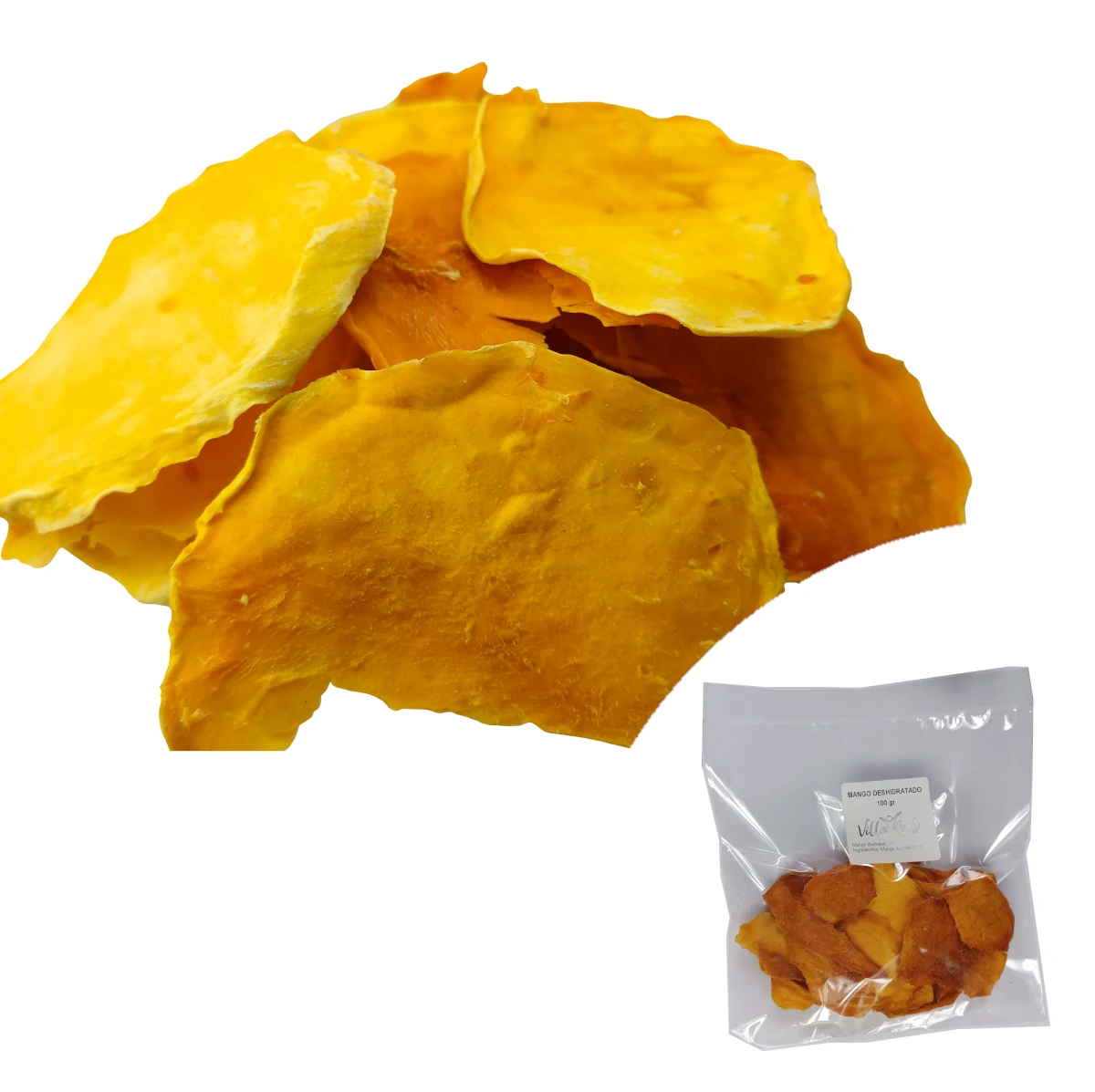 100 gramos de Mango deshidratado cortado en tajadas, en bolsa Transparente sellada, Lista para consumir.